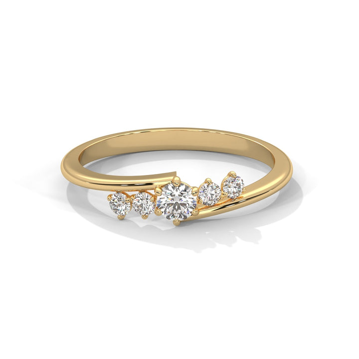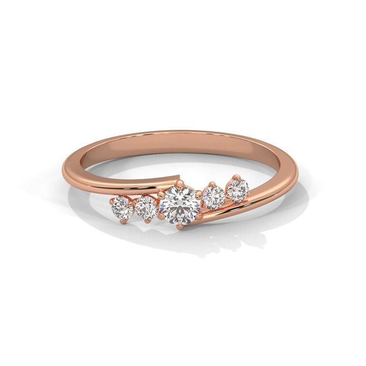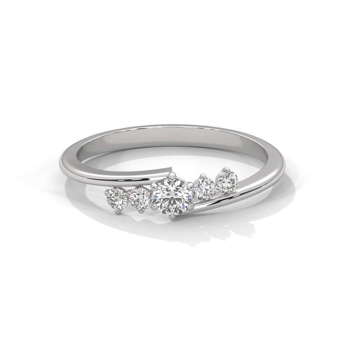 Diamond Bypass Ring – Elegant Curved Band with Round-Cut Stones