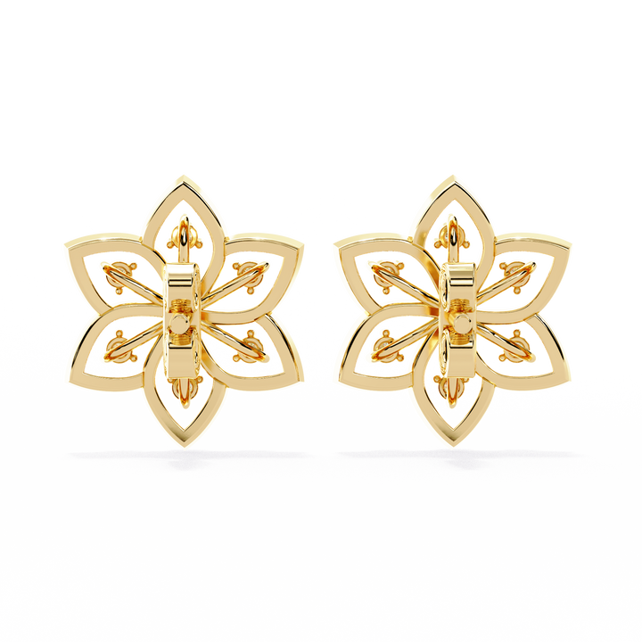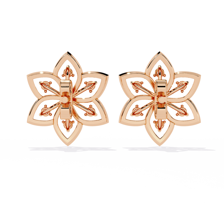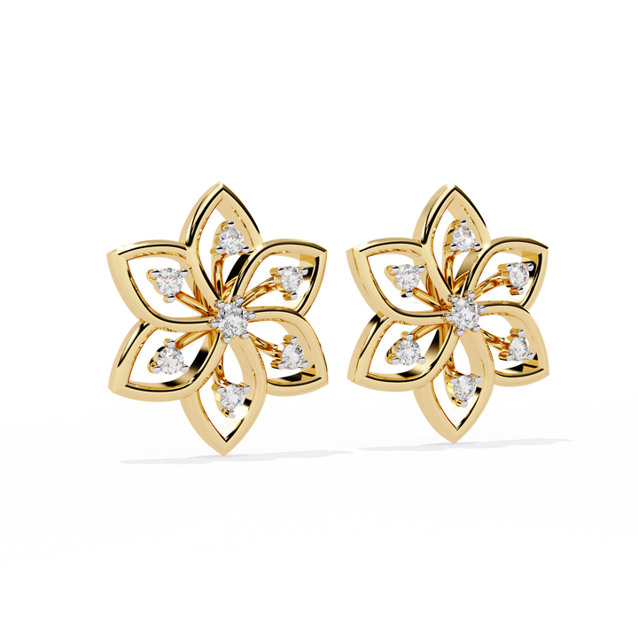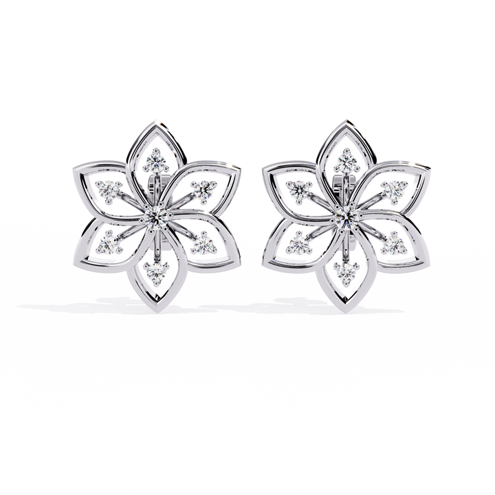 Celebrate timeless beauty with these Diamond Floral Petal Stud Earrings, designed to capture the elegance of blooming flowers. Each earring features a meticulously crafted six-petal design, accented with sparkling round-cut diamonds that radiate brilliance from every angle. The open petal structure adds depth and lightness, making them perfect for both everyday elegance and special occasions.