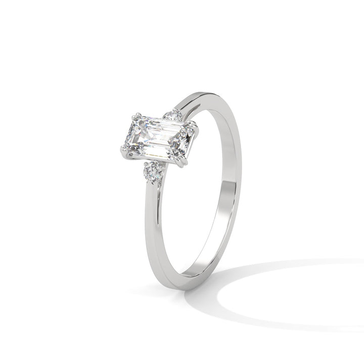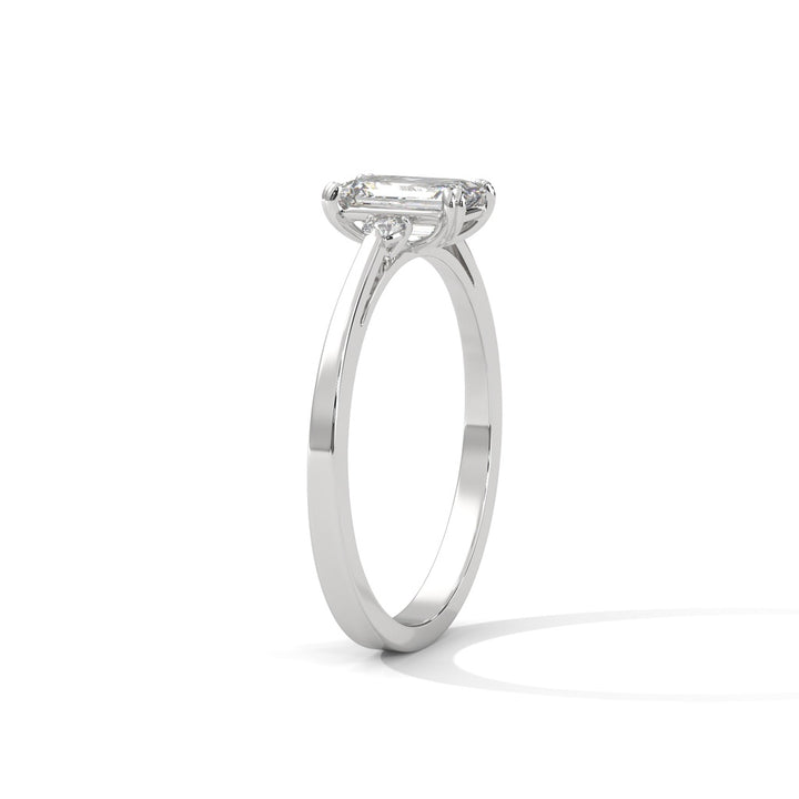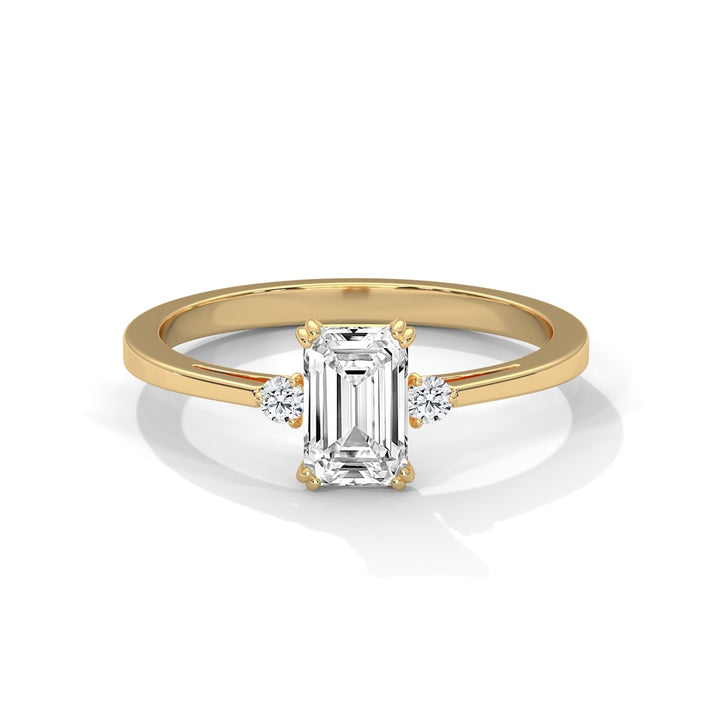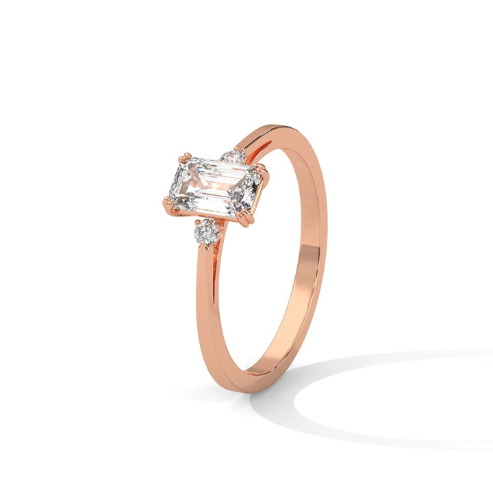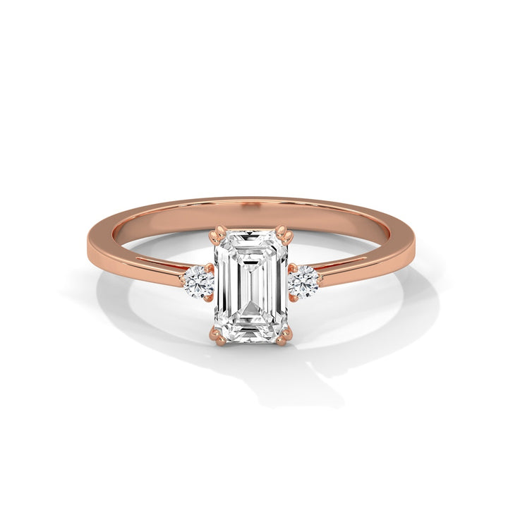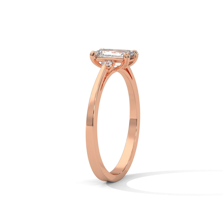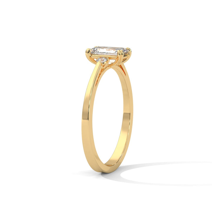 Emerald Cut Diamond Trio Ring in 9K/14K/18K Yellow, Rose & White Gold – Elegant Engagement Ring