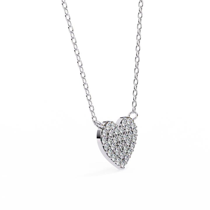 Celebrate love and elegance with this stunning Diamond Pave Heart Pendant Necklace. Expertly crafted in solid gold, this timeless piece features a beautifully contoured heart silhouette, fully encrusted with dazzling round-cut diamonds for maximum brilliance. The pave setting ensures each diamond is perfectly placed, creating a seamless sparkle from every angle.