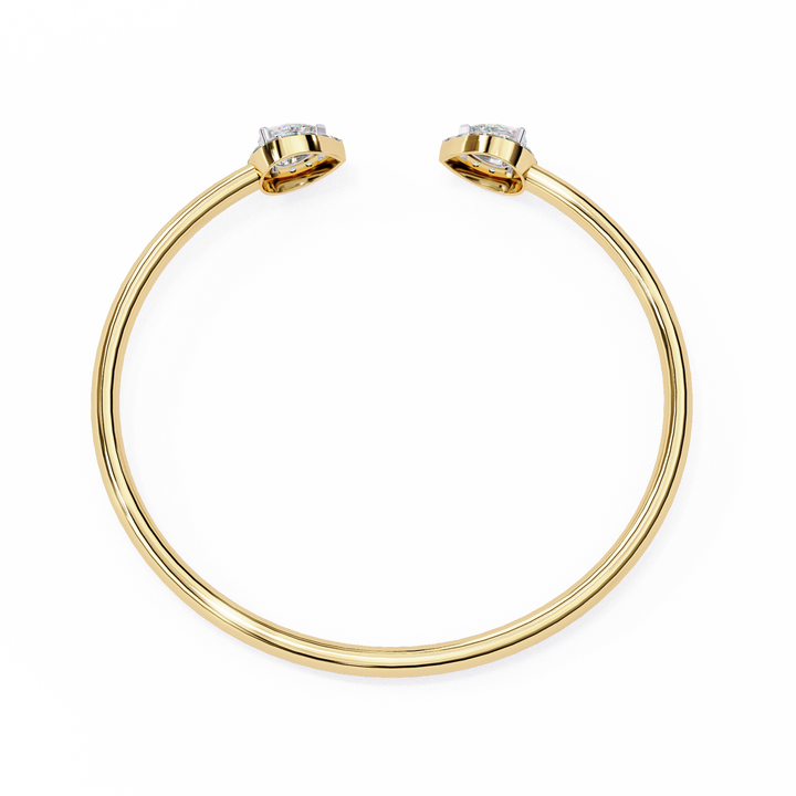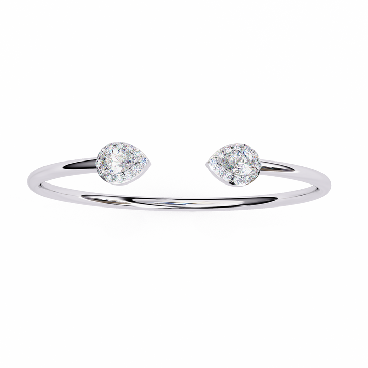 Elevate your elegance with this stunning Open Bangle Bracelet, designed with a sleek, minimalist band and adorned with two pear-shaped diamond clusters at each end. The open design adds a touch of modern sophistication while the sparkling diamonds bring timeless beauty, making it perfect for both everyday wear and special occasions.