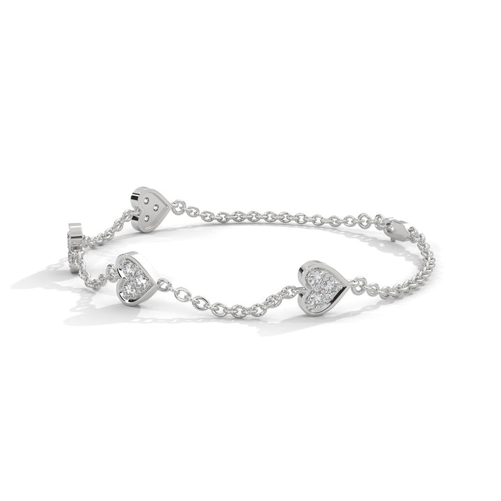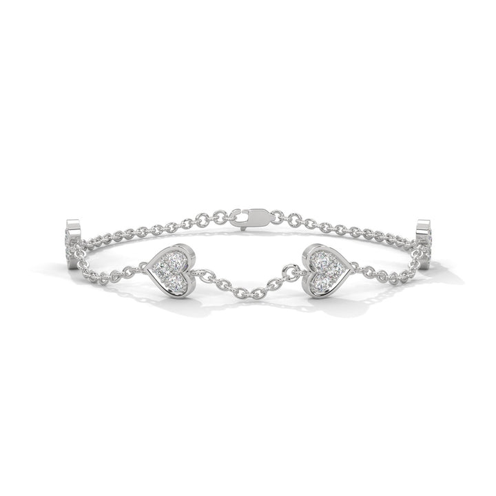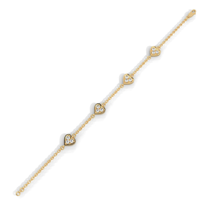 Celebrate love and elegance with this beautiful Double Heart Diamond Chain Bracelet in Gold. Featuring two heart-shaped designs accented with sparkling diamonds, this bracelet is the perfect symbol of romance and timeless style. Delicate yet eye-catching, it makes a meaningful gift for someone special or a charming addition to your own jewelry collection.