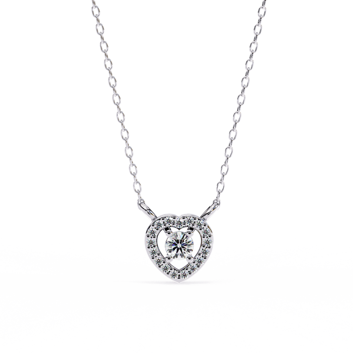Celebrate love and elegance with this breathtaking Heart Shape Diamond Halo Pendant Necklace in Gold. The pendant features a dazzling round diamond at its center, beautifully framed by a halo of sparkling diamonds set in a heart-shaped design. This timeless symbol of romance makes it the perfect gift for anniversaries, birthdays, or any special occasion.