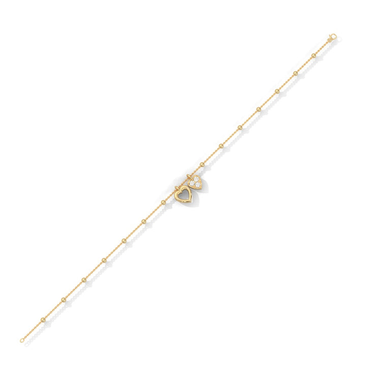 Leaf Charm Diamond Beaded Chain Bracelet in Gold.