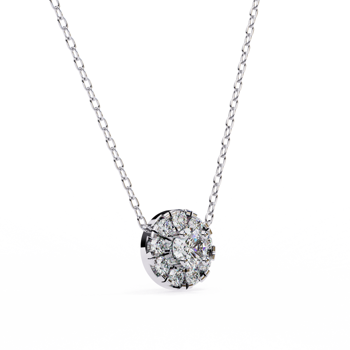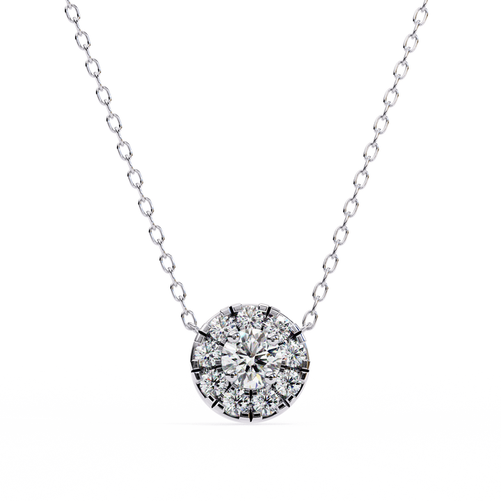 Luxury Round Diamond Cluster Pendant Necklace – Timeless Sparkle & Elegant Design.