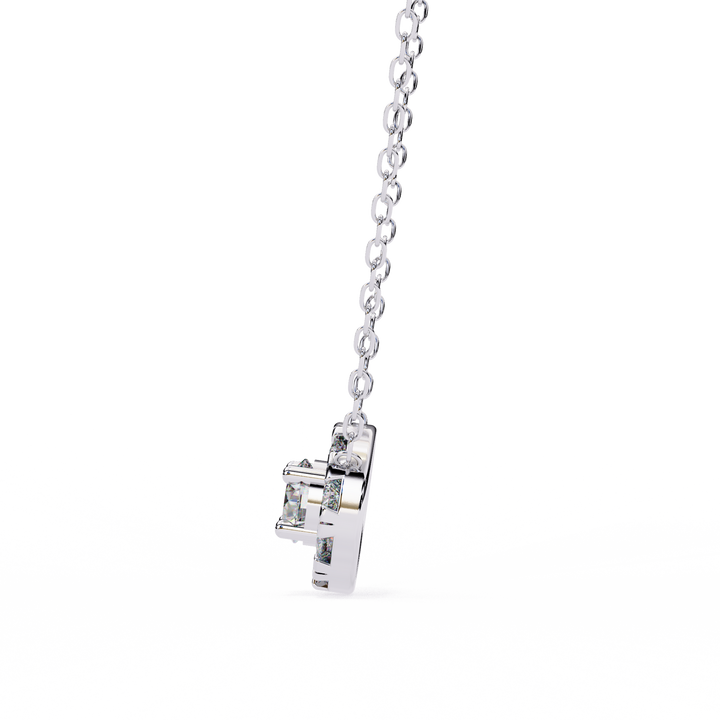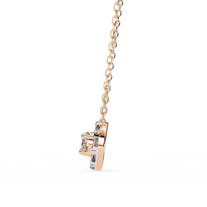 Elevate your elegance with this stunning Round Diamond Cluster Pendant Necklace, meticulously crafted to capture light from every angle. Featuring a dazzling cluster of precision-set round diamonds, this pendant creates the illusion of a single, larger brilliant stone, offering maximum sparkle and radiance. Suspended gracefully from a delicate chain, the design blends classic charm with modern sophistication, making it perfect for everyday wear or special occasions.