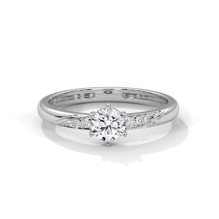 Round Cut Diamond Engagement Ring with Side Stones – Classic Solitaire Accent Design.