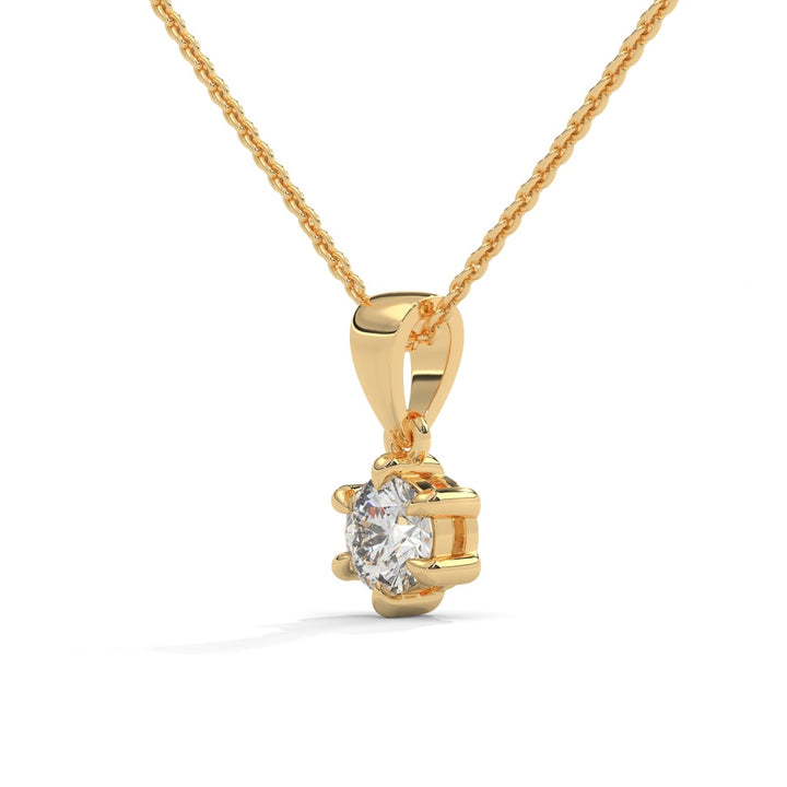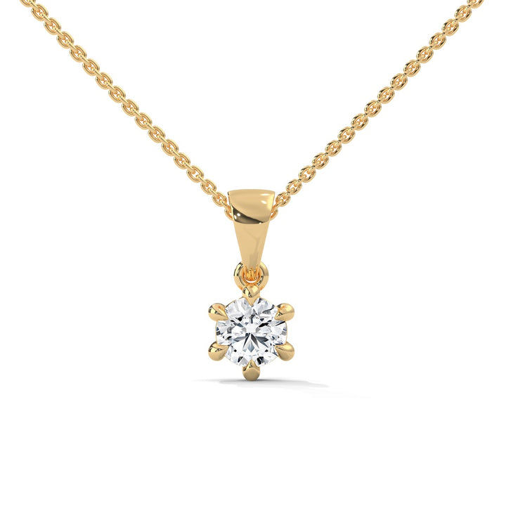 Add a touch of winter sparkle with this Round Cut Diamond Snowflake Pendant Necklace. Featuring a brilliant center diamond in a delicate snowflake design, this pendant is crafted in solid gold for lasting shine. Perfect for daily wear or special occasions.