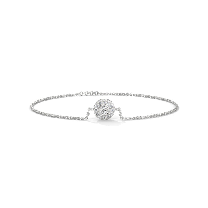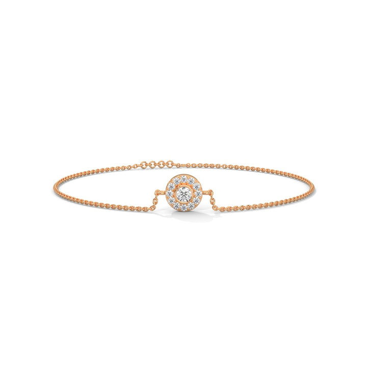 Add effortless sparkle to your everyday style with this elegant Round Diamond Halo Chain Bracelet in Gold. Featuring a brilliant round diamond at the center, surrounded by a halo of shimmering accent diamonds, this bracelet radiates timeless beauty. The delicate chain design makes it lightweight, comfortable, and perfect for daily wear, while still offering enough brilliance to complement evening looks.