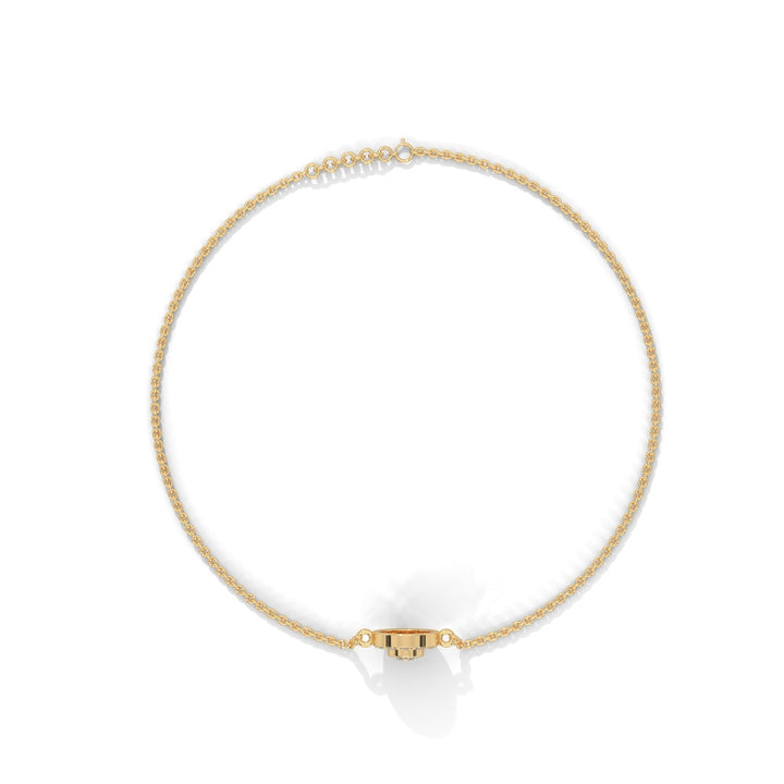 Crafted in fine gold, this bracelet blends modern minimalism with classic elegance. Its adjustable chain ensures a secure and comfortable fit, making it a versatile piece that can be worn solo for a subtle touch of glamour or layered with other bracelets for a trendy stacked look.