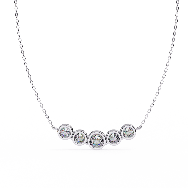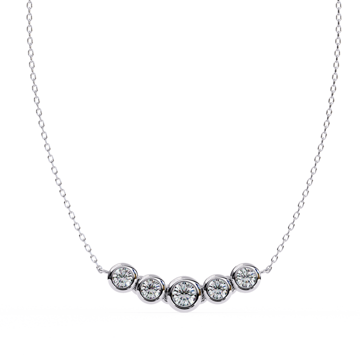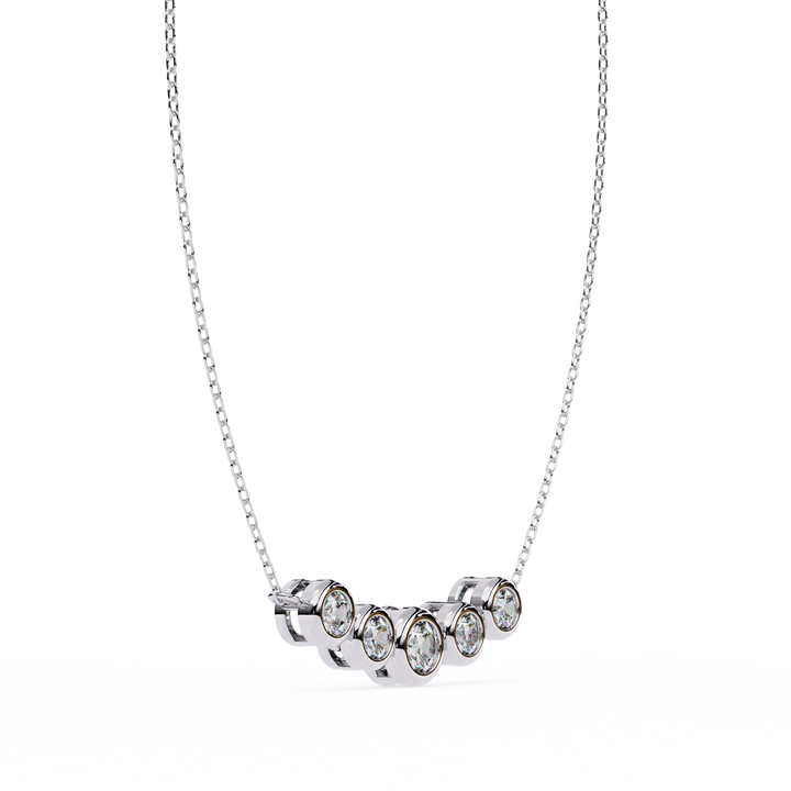 Elevate your style with this Seven Stone Diamond Bezel Bar Pendant Necklace, featuring seven brilliant round-cut diamonds set in sleek bezel frames, aligned in a graceful bar design. The minimalist style exudes timeless sophistication, making it perfect for both everyday elegance and special occasions.